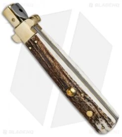 AGA Campolin 11″ Frosolone Bayonet Stiletto Auto Knife Stag/Brass (5″ Satin)